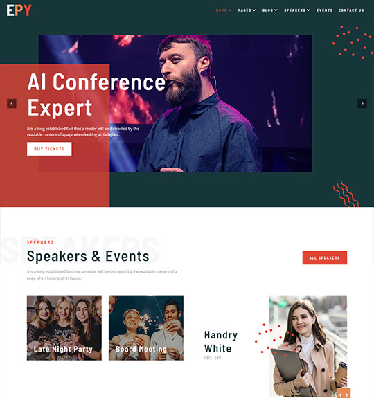 Epy is a powerful theme for event and conference websites. EPY WordPress theme is a professional-looking web design that is ideal for educational events, conferences, webinars, shows, concerts, forums and the list of different digital gatherings. With Elementor, it is extremely easy to create your forthcoming event website. Expert developer or an amateur freelancer, EPY can be quickly set up your site in minutes. No coding necessary when performing customizations.