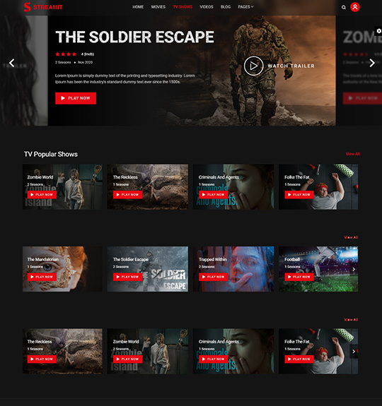 Create an OTT website similar to Netflix, Amazon Prime or YouTube with Streamit. It is a powerful WordPress theme for OTT Streaming platforms. It is a sleek and clean looking Theme. With some unique features and stunning UI/UX elements, the StreamIt template is a perfect package for any media or video, movie, show streaming related web applications.